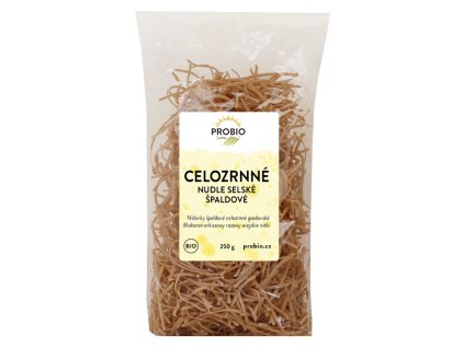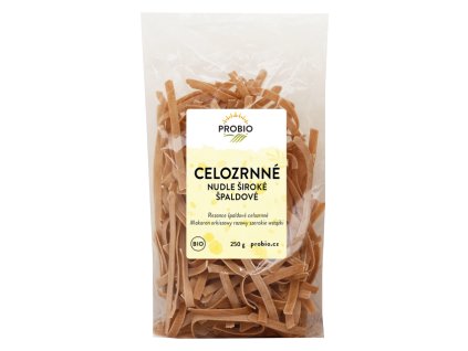 Bezvaječné špaldové nudle z celozrnné špaldové mouky, která obsahuje obal zrna a klíček.