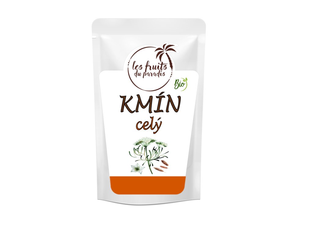 Kmín BIO celý je koření, které pochází z rostliny cuminum cyminum. Tato rostlina je příbuzná s mrkví a fenyklem. Má jemnou vůni a hořkosladkou chuť.Používá se v mnoha různých kuchyních po celém světě. Je tradičním kořením v indické, arabské a mexické kuchyni. Používá se do polévek, omáček, salátů, dušených pokrmů, masa, ryb i zeleniny.